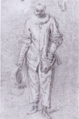 Antoine Watteau, Pierrot, vers 1717, sanguine, pierre noire et craie blanche, 24x16 cm Haarlem, Teylers Museum.