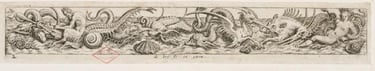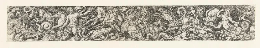 Fig.4 : Cornelis Bos, sur un dessin de Giulio Romano et Andrea Mantegna, Frise avec le triomphe de Neptune, ca 1548 - 1650, gravure, 4,5 x 31,5 cm