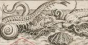 Les coquillages, multiples – moule, buccin, Tridacna, etc. – proviennent ainsi de textes illustrés des savants du XVIe, comme Aldrovandi par exemple. Leur présence prouve que l’Histoire Naturelle constitue une part importante de l'oeuvre de Johann-Theodor de Bry. C’est le cas, aussi, de l’esturgeon (Fig.5), reconnaissable aux points noirs distinctifs sur son côté, et son rostre. Ces espèces font partie des taxons pêchés en Europe. C’est aussi le cas de la langouste, ou homard géant. Ce monstre l’est par sa grandeur, rendu hors normes par des dimensions peu probables. Les monstres hybrides, inquiétants car n’étant pas totalement liés à un milieu défini, s’incarnent dans le triton de la figure 1 - sous-entendu : satyre marin, ou encore de sanglier-marin, réinterprétation de la baleine-sanglier.