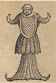 Fig. 9 : L’évêque de mer, gravure sur bois, in Conrad Gesner, Historiae Animalium, livre IV, Francfort, Bibliopolio Andreæ Cambieri, 1604 [1551], p. 439.