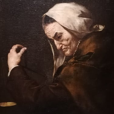 Ribera s’installe à Naples en 1616 et y demeure jusqu’à sa mort en 1652. Succédant au Caravage, disparu six ans plus tôt, il s’impose comme le nouveau maître du naturalisme en clair-obscur. Dans la vice-royauté espagnole, son style évolue, désormais il combine le ténébrisme de sa période napolitaine avec le colorisme vénitien. Sa renommée grandissante lui vaut de nombreuses commandes, et il devient peintre de cour. Toutefois, Ribera continue à défier les conventions en représentant la pauvreté avec une profondeur psychologique inédite. En témoignent ses séries de philosophes et de mendiants, réalisées pour le duc d’Alcalá dans les années 1630. Les haillons contrastent avec la noblesse intellectuelle des figures, tout comme la beauté intérieure de ses sujets s’oppose à leur apparence physique. Ribera magnifie ainsi le quotidien et met en lumière la misère, notamment à travers des œuvres comme Le Pied-Bot qu’il réalise en 1642.